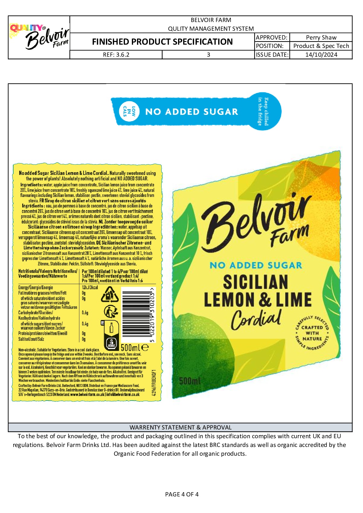 Discover the vibrant taste of our Sicilian Lemon & Lime No Added Sugar Cordial. Made with sun-ripened Sicilian lemons and tangy limes, it's a perfectly balanced blend of sharp citrus flavours and gentle sweetness.