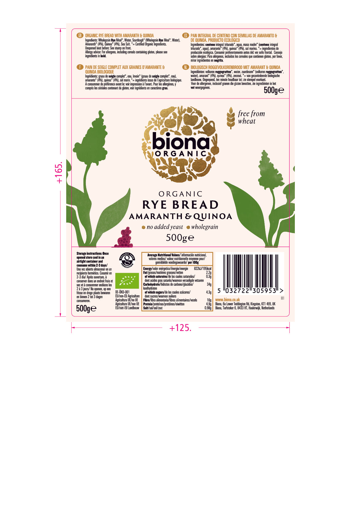 Made with sourdough and freshly milled whole rye, our Biona Amaranth & Quinoa Rye bread is wheat free, high in fibre and contains no added yeast; the perfect addition to a wide range of diets. Both amaranth and quinoa are native to South America and are naturally high in protein, making our rye bread a nutritious and tasty choice. Light and soft in texture, it is ideal served with a variety of sweet and savoury toppings, why not try topping with creamy peanut butter and banana or smashed avocado, lime and tomato. Either enjoy it straight from the packet or pop it in the toaster for a wholesome and healthy snack or meal.