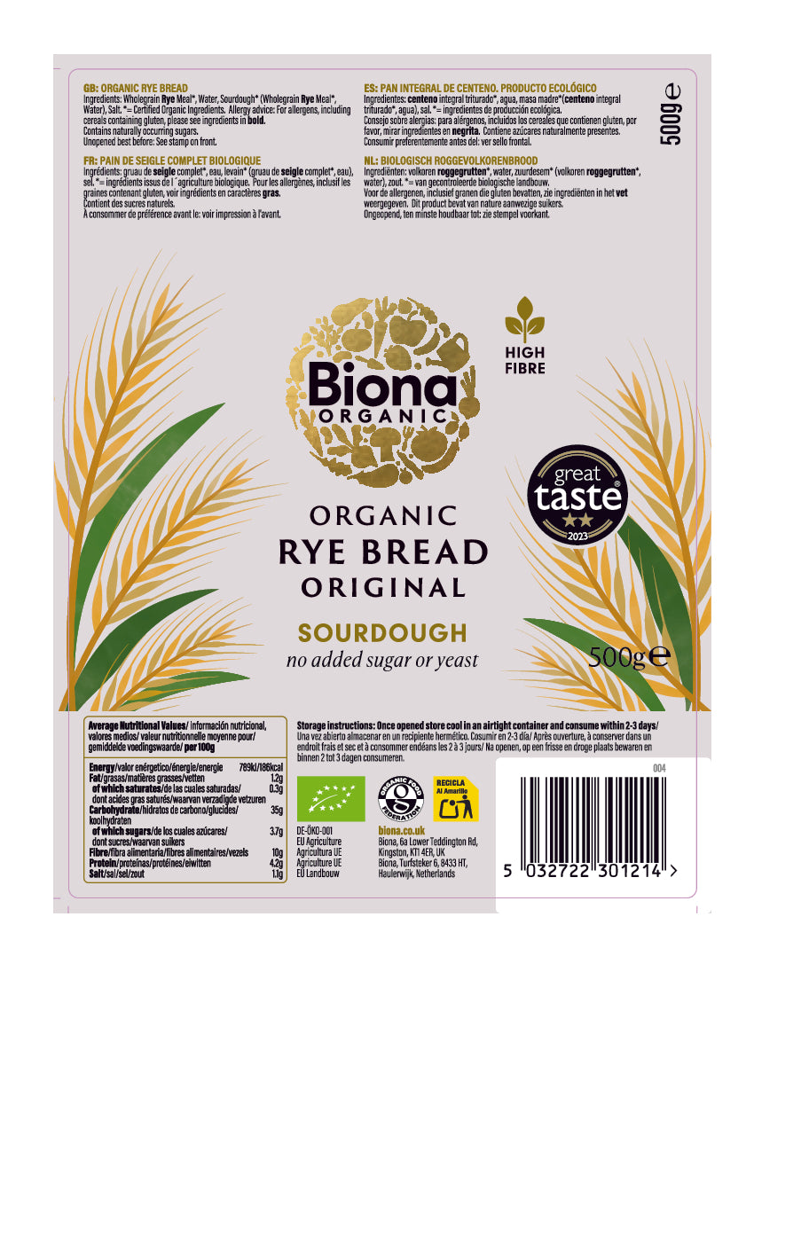 Biona Organic Rye Bread - 500g