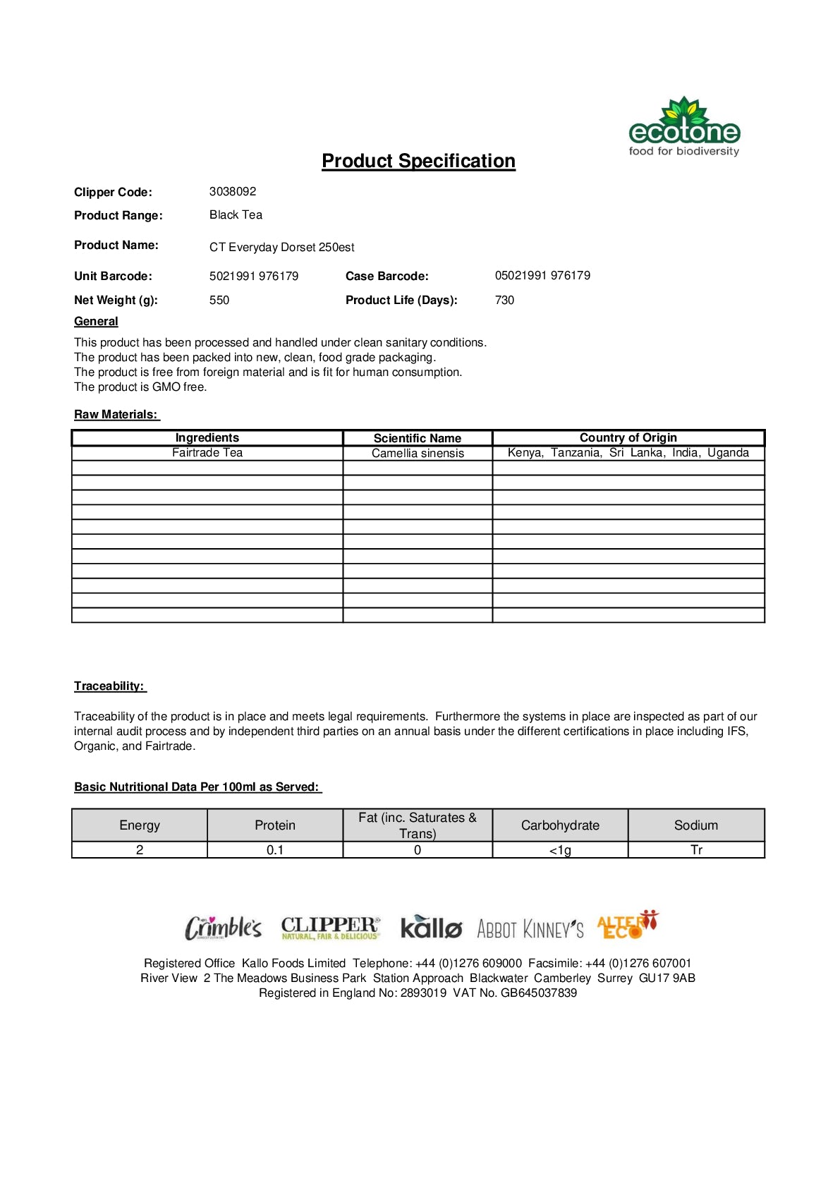 Clipper Fairtrade Classic Everyday Dorset Classic Tea 250bag