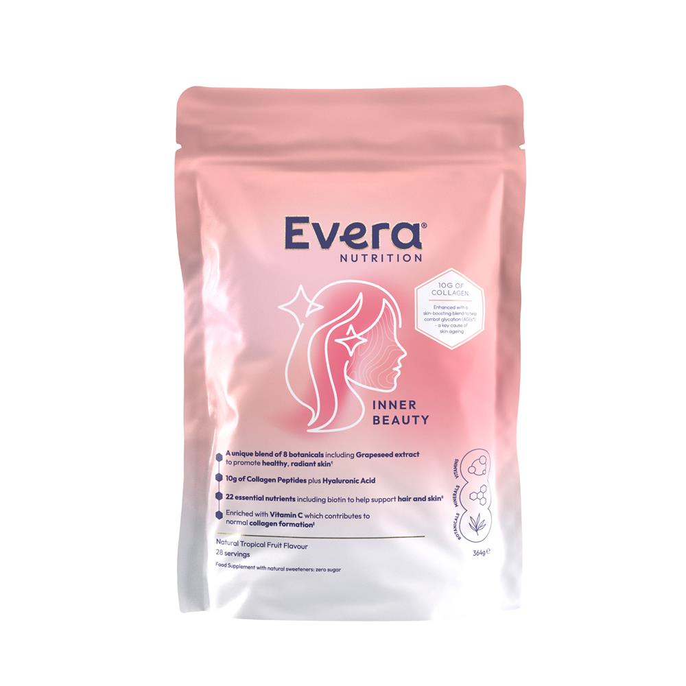 "Inner Beauty by Evera Nutrition provides a proprietary combination of vitamins, minerals, and botanicals specially formulated to support your hair, skin, and nails, so you can look and feel your radiant best at any age.