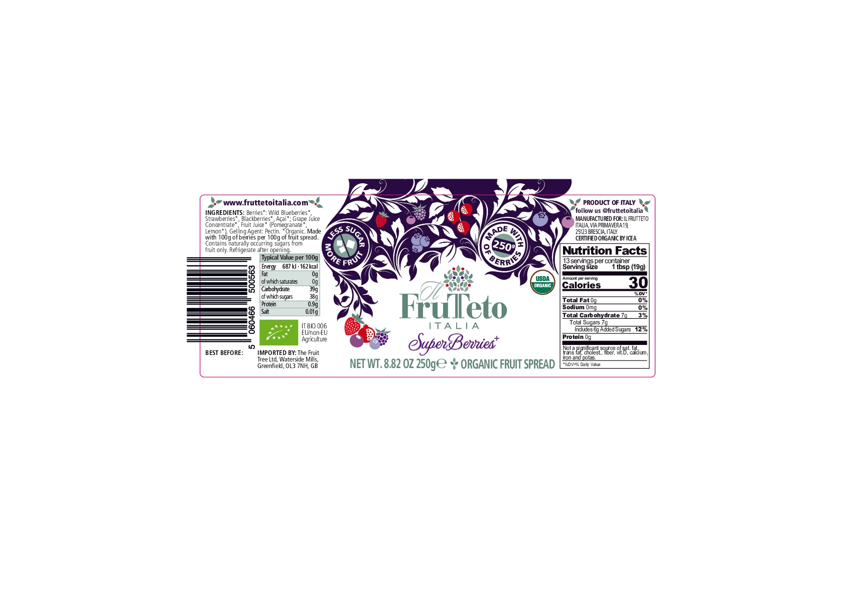 'Frutteto' means 'orchard' in Italian as it's in the Tuscan hills that these fruit spreads are handmade using fully ripe, organic, whole fruit sourced as locally as possible.