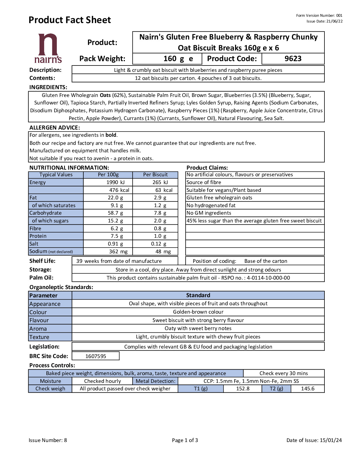 *We've compared our oats, blueberry & raspberry chunky biscuit breaks to over 100 sweet gluten free biscuits, and the good news is they contain 45% less sugar than the average of all those biscuits.