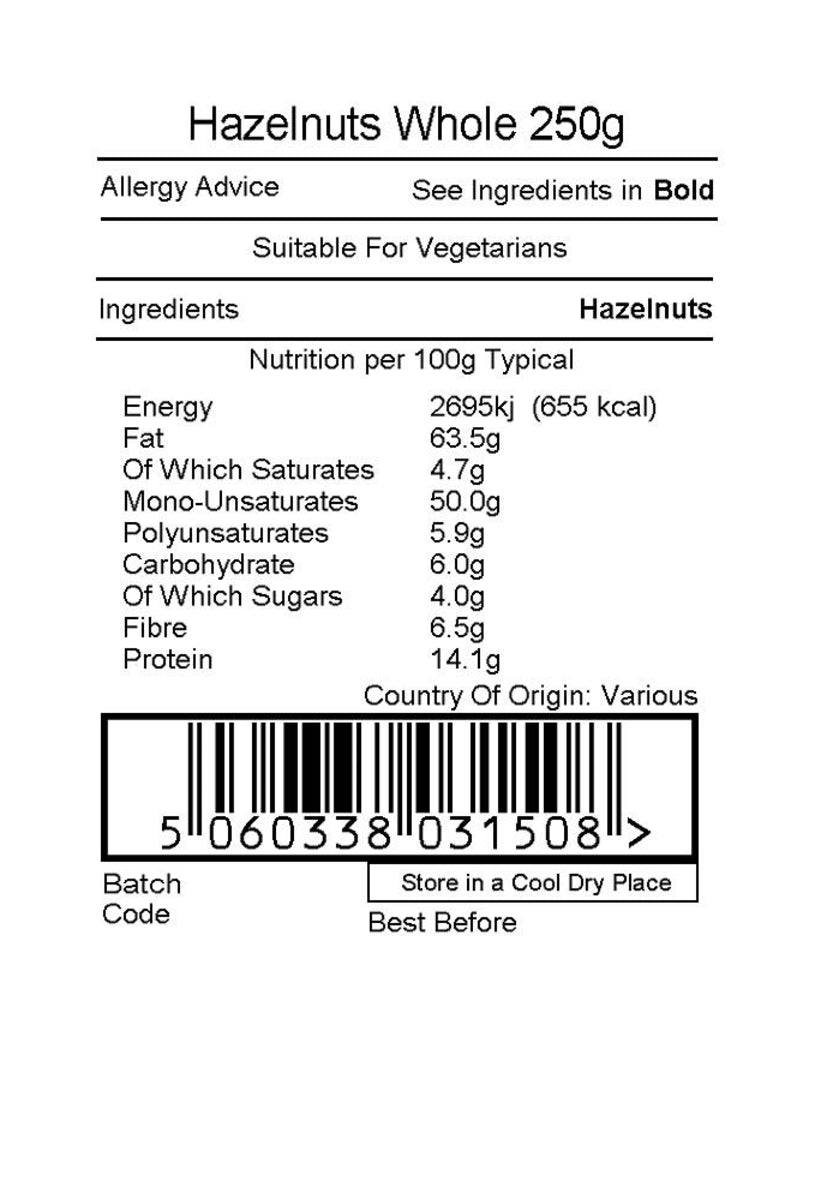 Hazelnuts Whole 250g