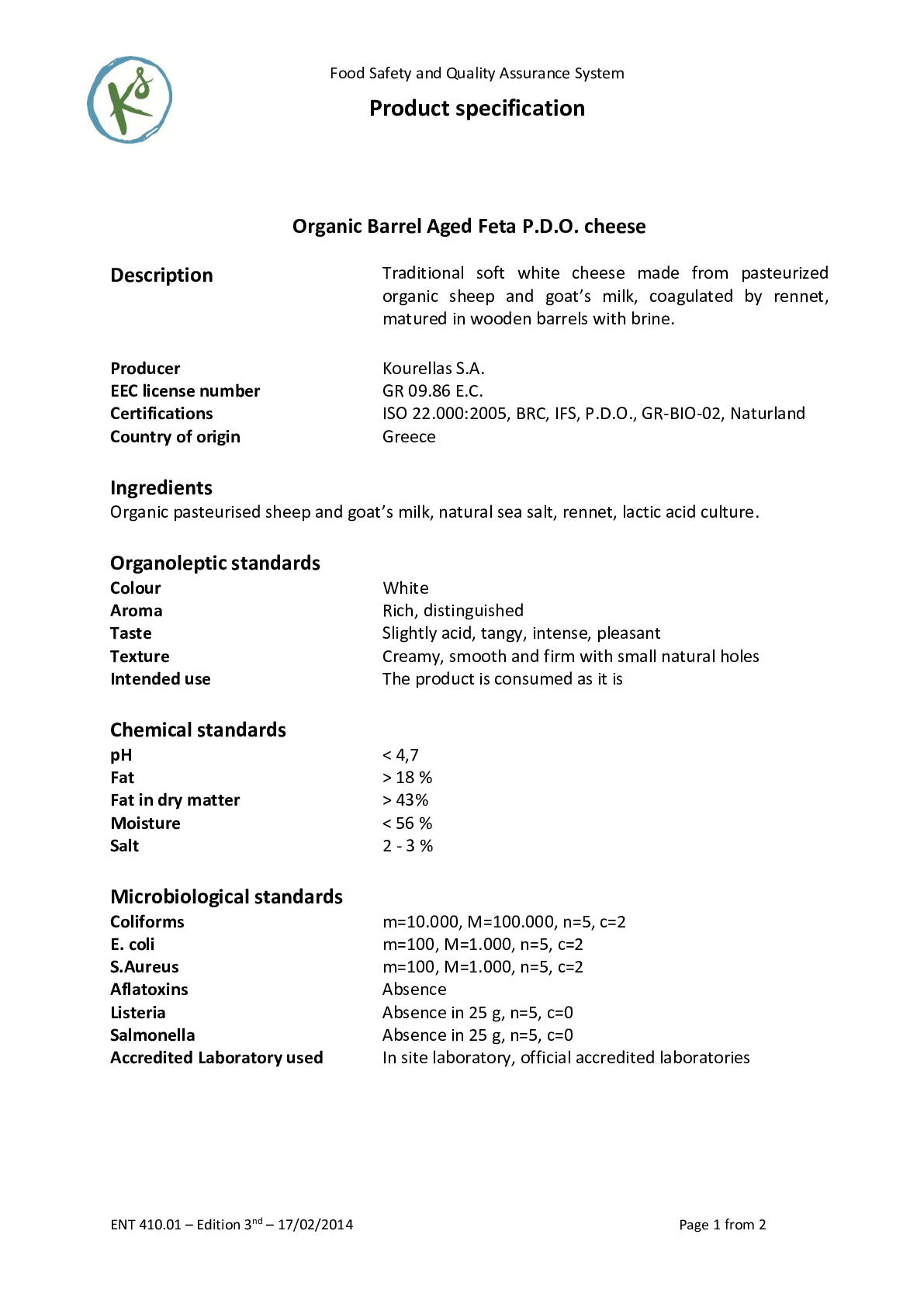 matured for at least three months in controlled temperature and moisture conditions. The long maturation period gives to the cheese its characteristic, rich flavours and aromas. Traditionally kasseri cheese is produced using 100% Greek, sheep's milk or a blend of sheep's and goat's milk (with a maximum of 20% goat's milk).