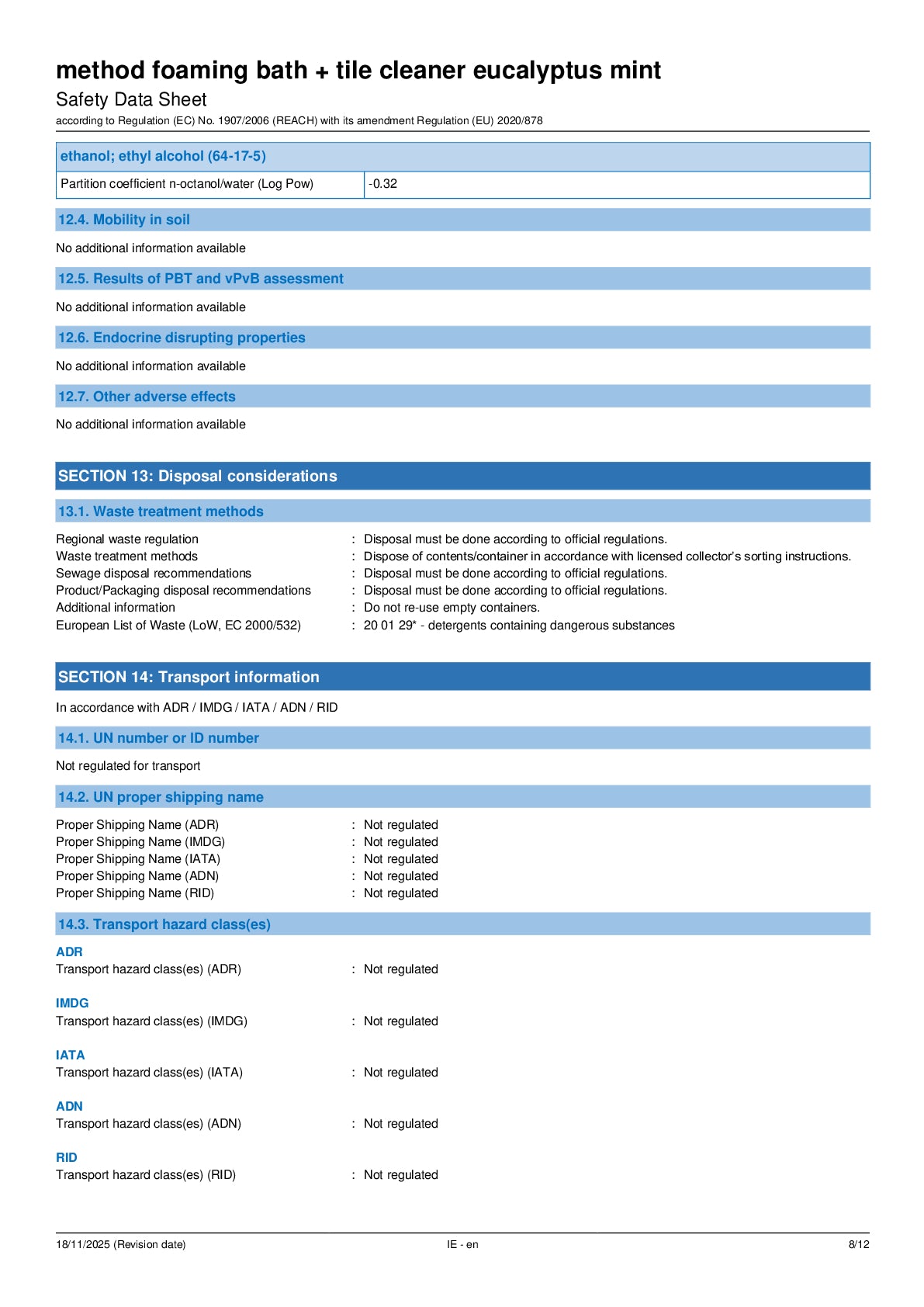 Fights grime on shower, tiles, bath, chrome and fittings. This heavy duty hero dissolves soap scum, is tough on stains and is a high foaming formula. Designed for your home and crafted without chlorine-bleach, parabens and phosphonates. Cruelty free and leaping bunny approved. 100% PCR bottle. Eucalyptus mint scent.