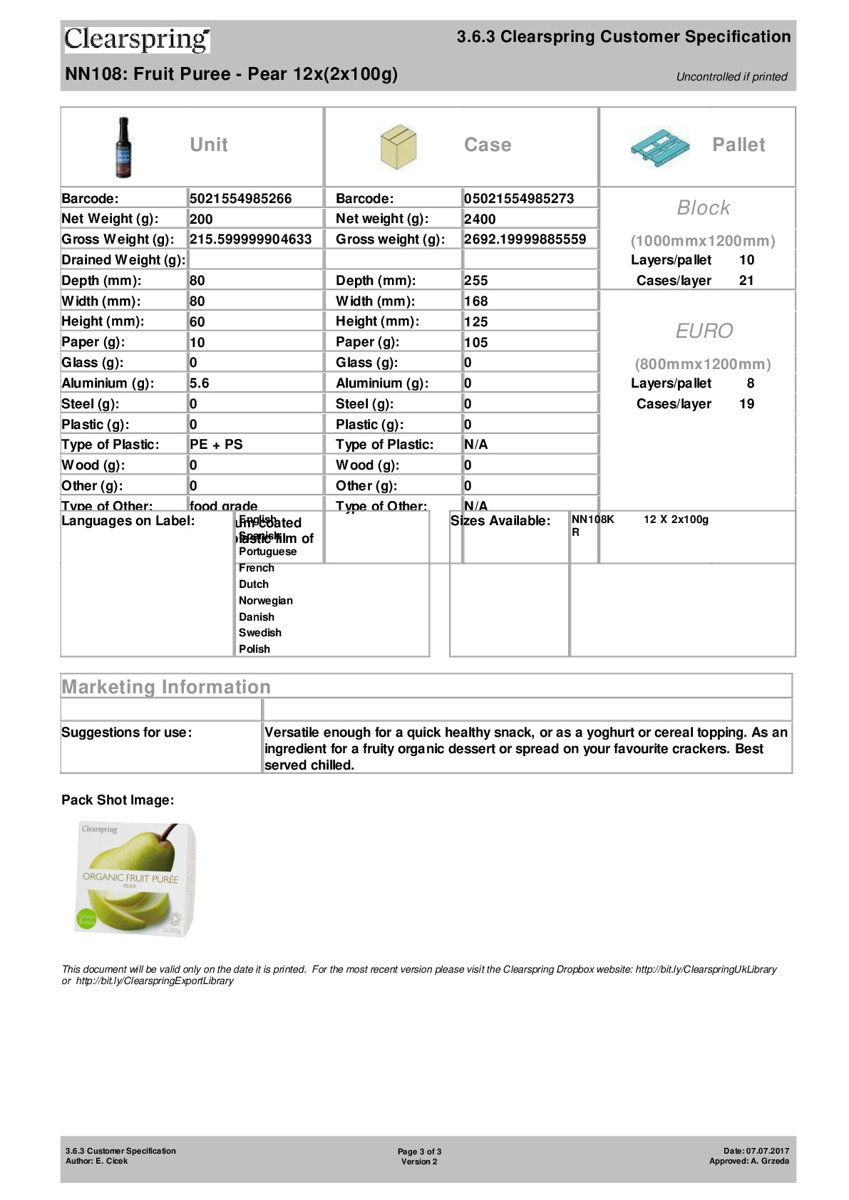 You will be surprised by the full, fresh flavour of Clearspring Organic Fruit Purees. The exceptional flavour comes from using specially selected ripe organic fruit and prepared with the minimum of heating so the fruit retains all of its natural goodness.