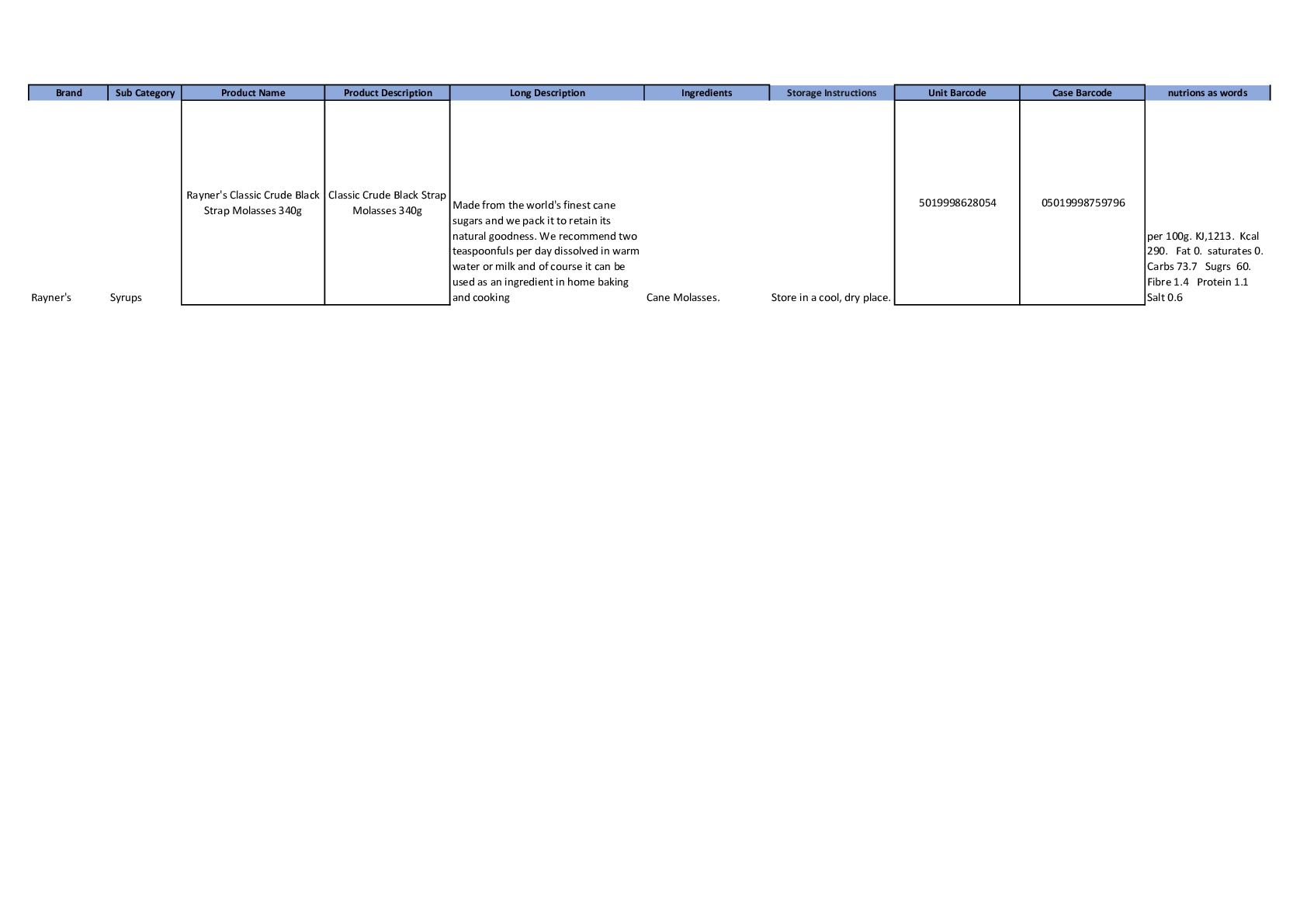 Crude Black Strap Molasses 340g Made from the world's finest cane sugars and we pack it to retain its natural goodness. We recommend two teaspoonfuls per day dissolved in warm water or milk and of course it can be used as an ingredient in home baking and cooking