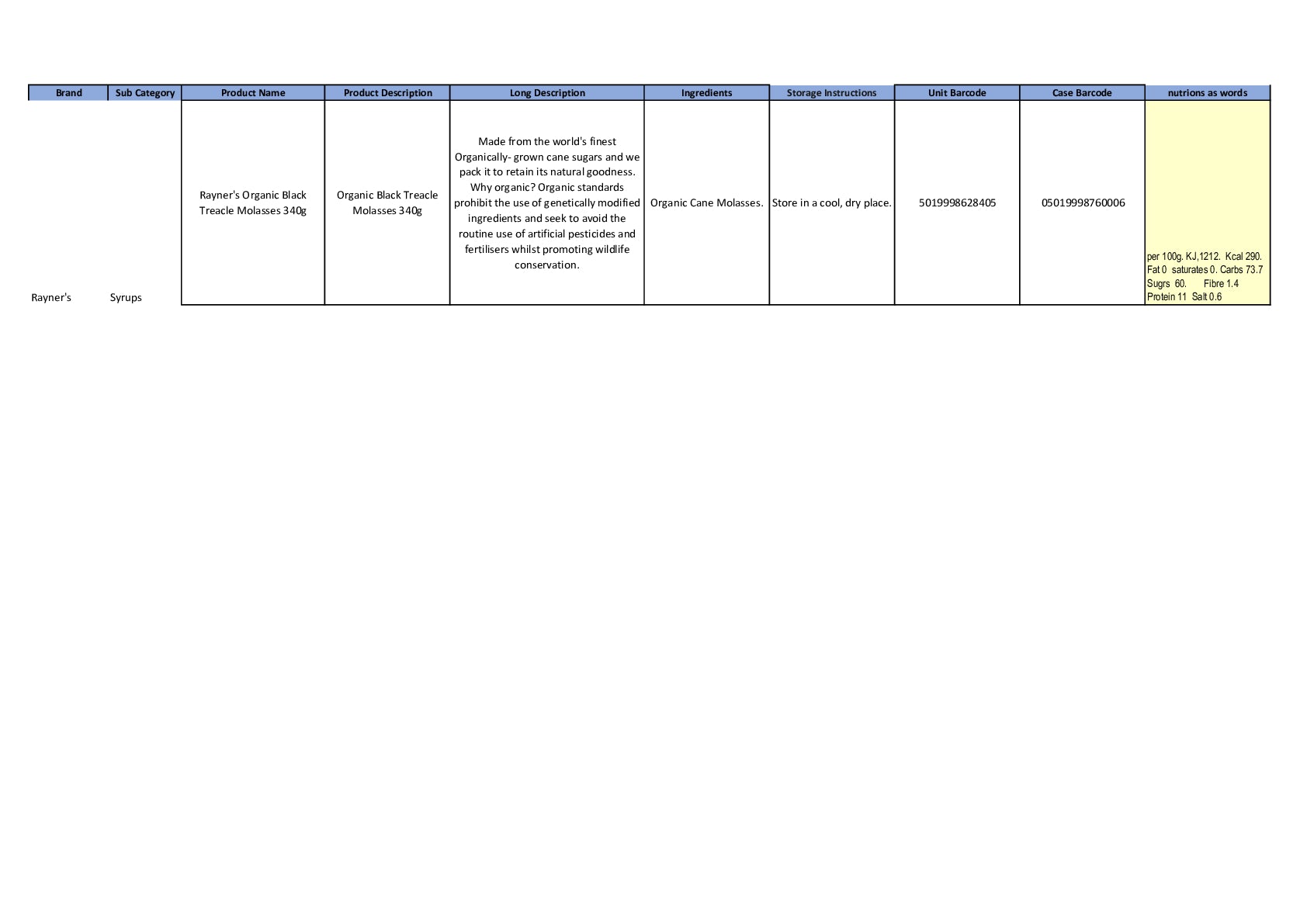Organic Black Treacle (Molasses)340g "Made from the world's finest Organically- grown cane sugars and we pack it to retain its natural goodness. pour on, bake, cook, brew.