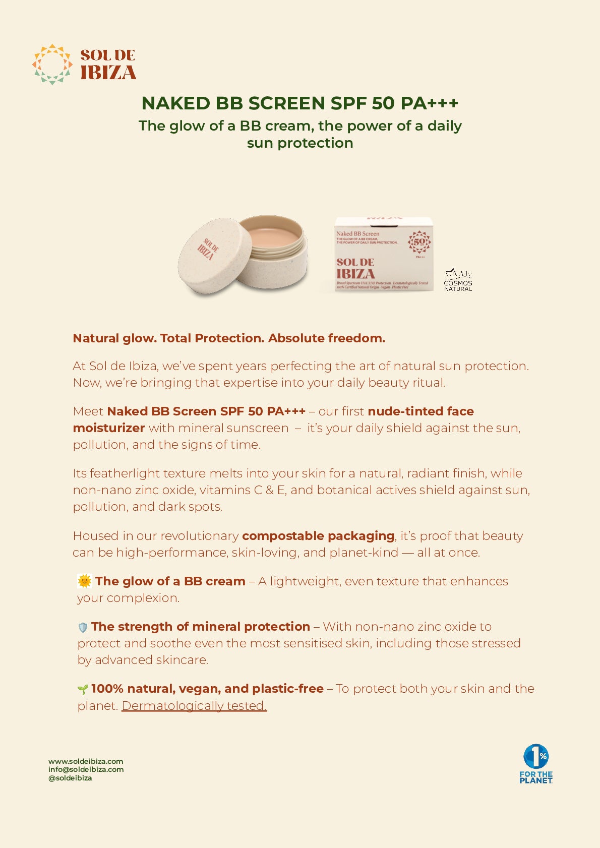 Meet the new Naked BB Screen SPF50 PA+++: the nude-tinted mineral face moisturizer that perfects, protects, and respects the skin.