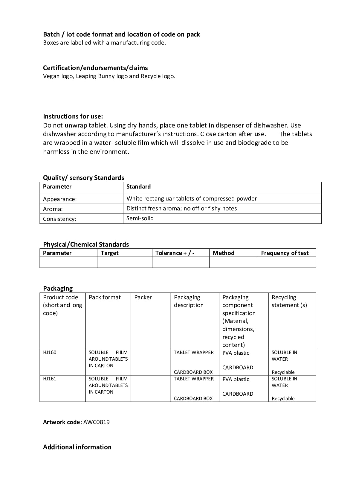 For all those hands that don't do dishes give our classic dishwasher tablets a try. Made using plant-based derived ingredients they're biodegradable and safe for the environment. The powerful cleaning agents will leave your glasses and dishes sparkling. The inner film coating dissolves in your dishwasher and the outer cardboard packaging is also recyclable. Swap to our new tablets today! Suitable for use with septic tanks.